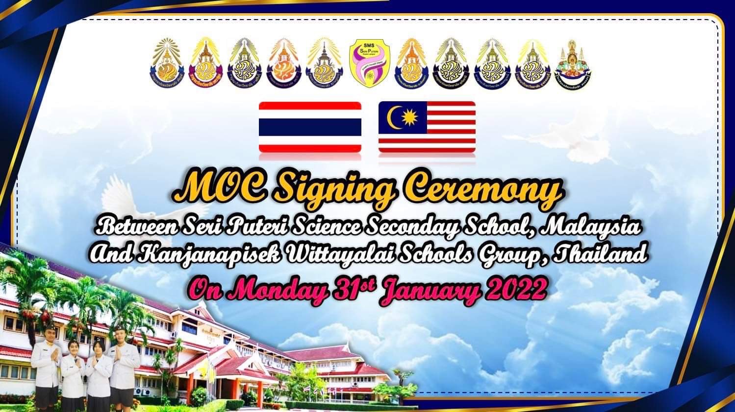 พิธีลงนามบันทึกข้อตกลงความร่วมมือทางวิชาการ ภาษาและวัฒนธรรม MOC ระหว่าง Sekolah Menengah Sains Seri Puteri (SESERI) :: กาญจนาภิเษกวิทยาลัย กาฬสินธุ์