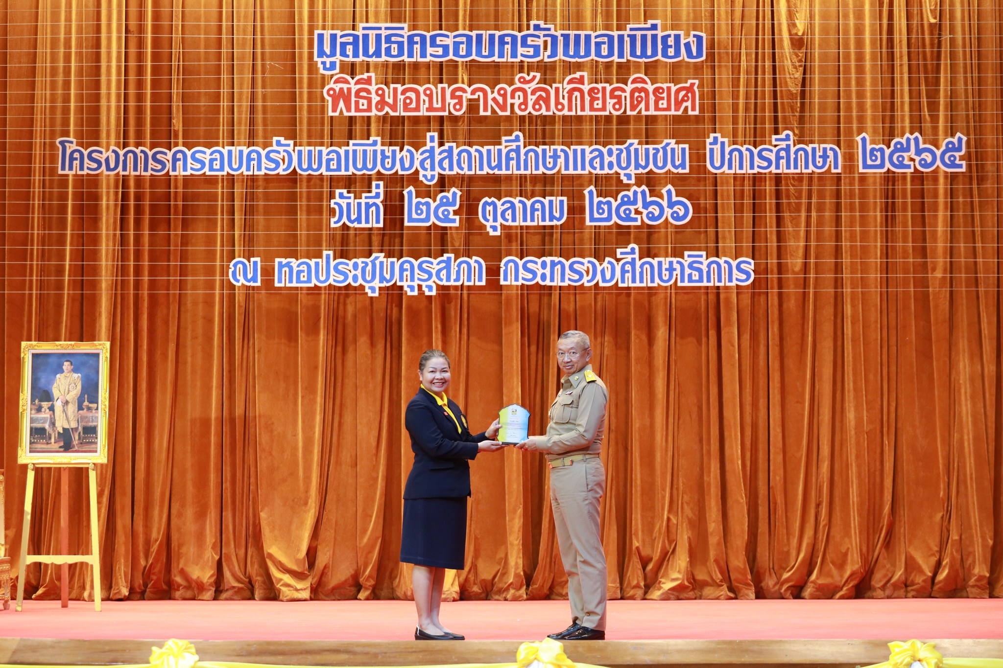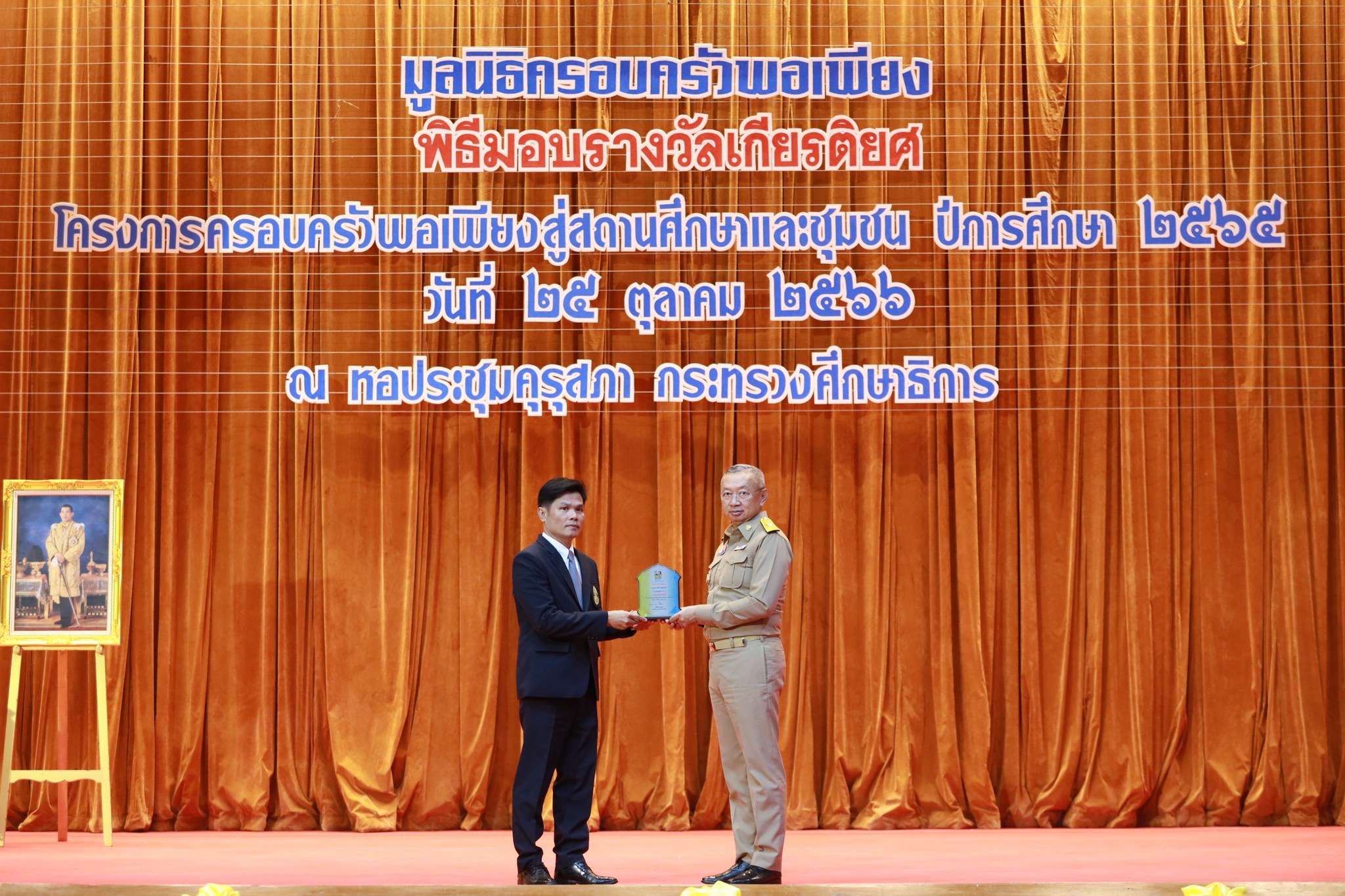 มูลนิธิครอบครัวพอเพียงได้มอบรางวัลเกียรติยศโครงการครอบครัวพอเพียงสู่สถานศึกษาและชุมชน :: กาญจนาภิเษกวิทยาลัย กาฬสินธุ์